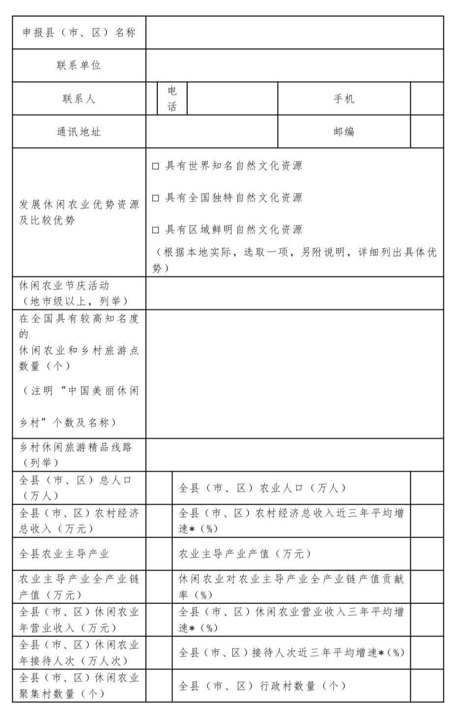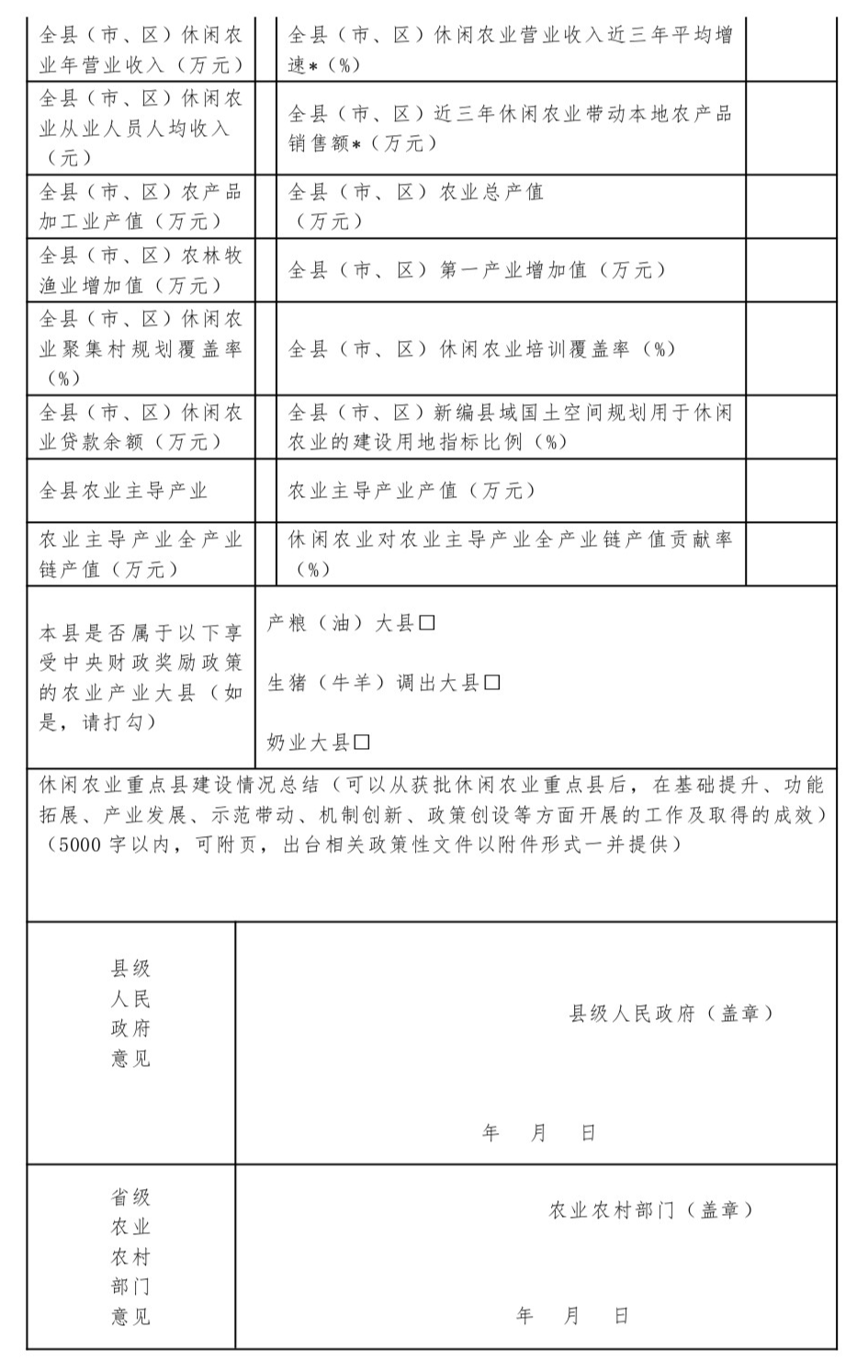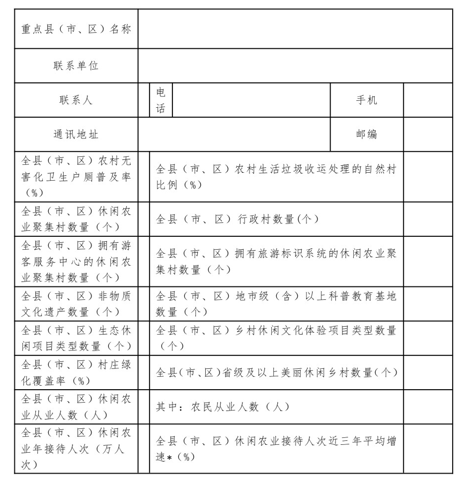 2024年全国休闲农业重点县申报表