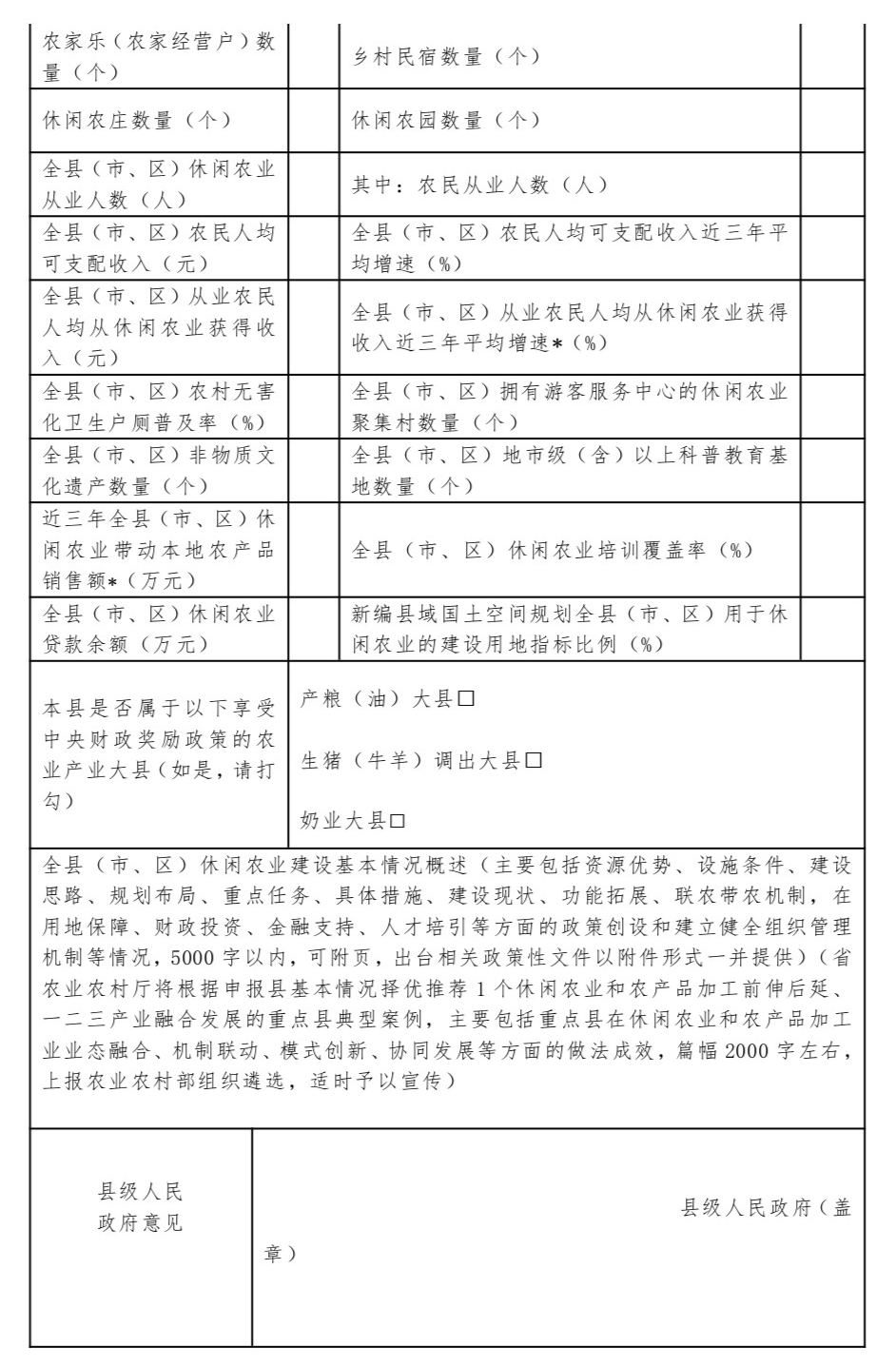 2024年全国休闲农业重点县申报表